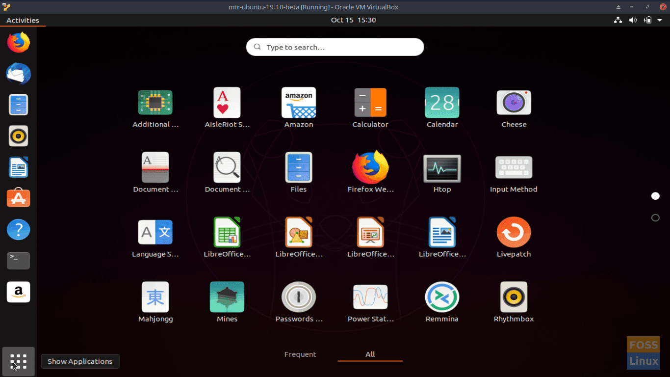 Open the Activities overview by selecting the Show Applications icon in the lower-left-hand corner of your screen.