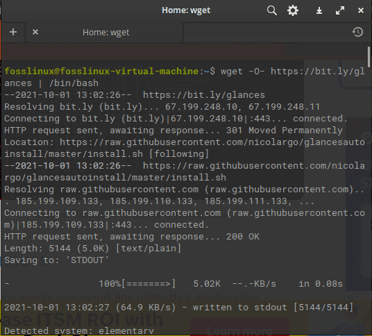 To install Glances to your elementary OS, use curl or the wget command as displayed below: