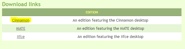 Next, we need to get the latest version of Linux Mint ISO file from there site. Linux Mint has three editions available to download; we will choose the Mint’s flagship edition called Cinnamon.