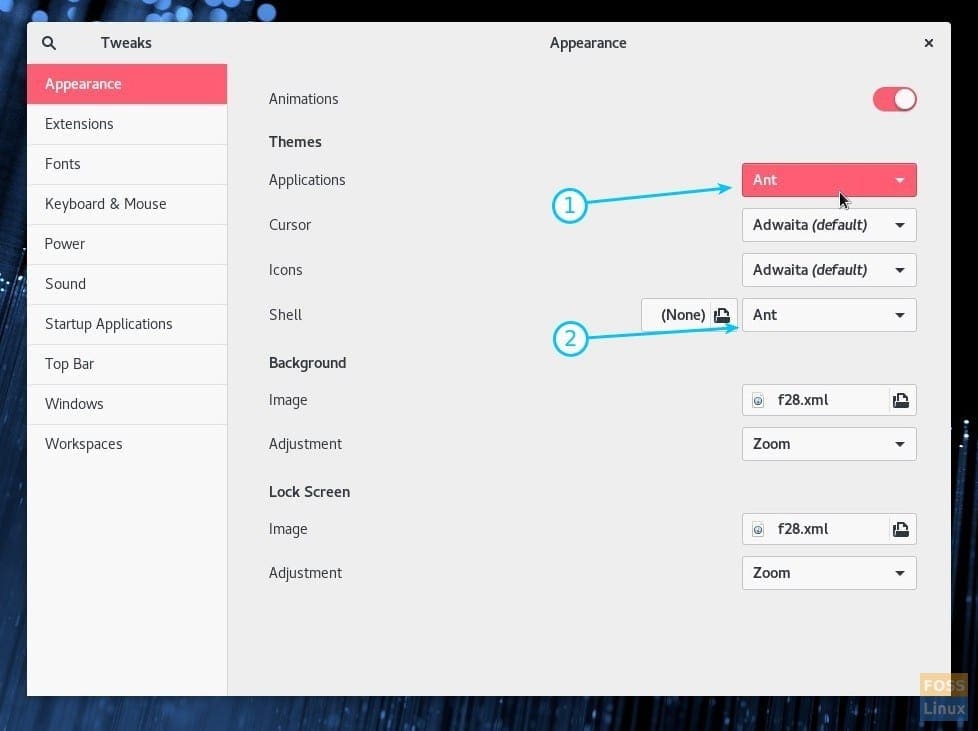 For illustration purposes, I have downloaded the Ant theme that comes packed with GTK3 and the Shell themes. The ant theme is a flat theme inspired by macOS and comes in a dark flavor too. If it’s your favorite, too, you can grab a copy from the link below.
