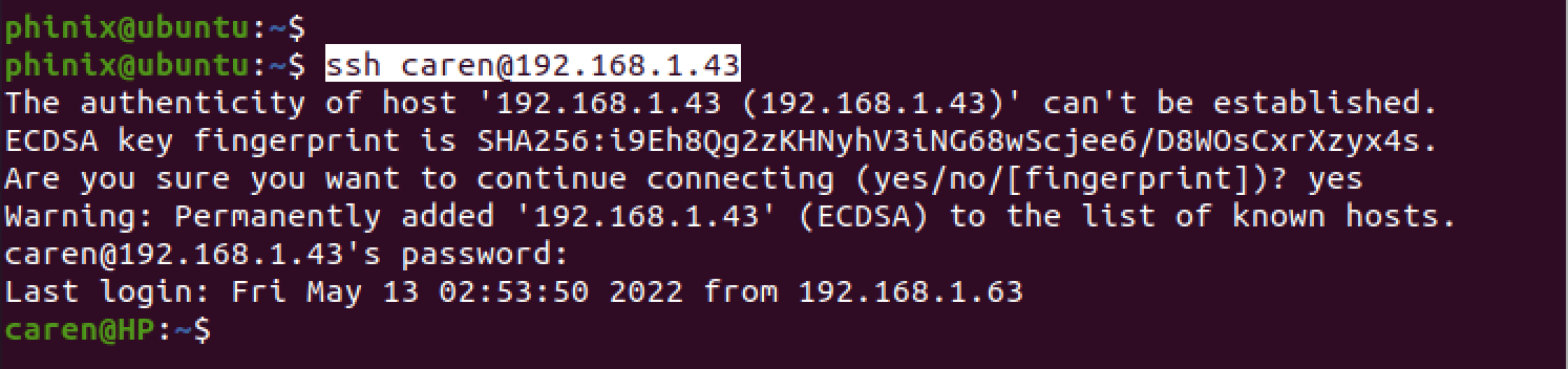 For this post, we will try to connect to a Linux Mint, which is also connected to my local network. Below is the syntax for establishing an SSH connection.
